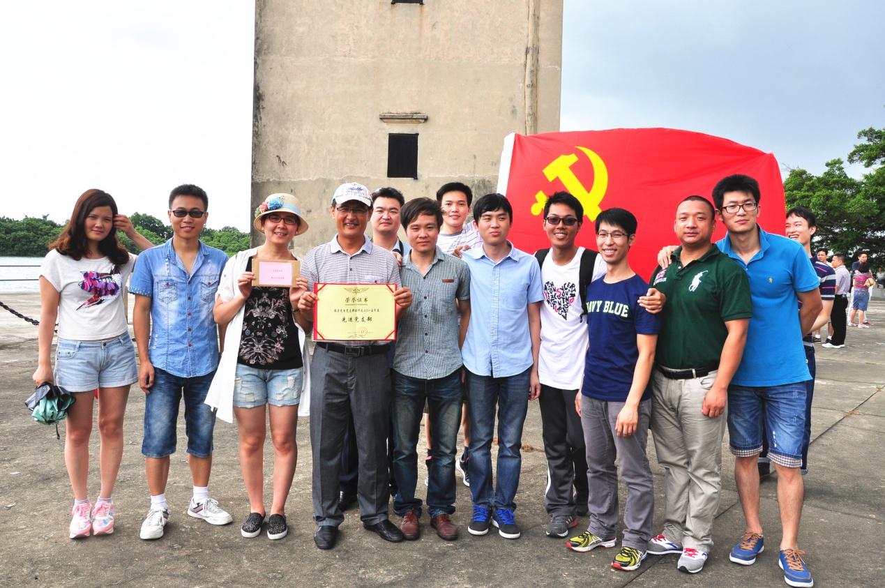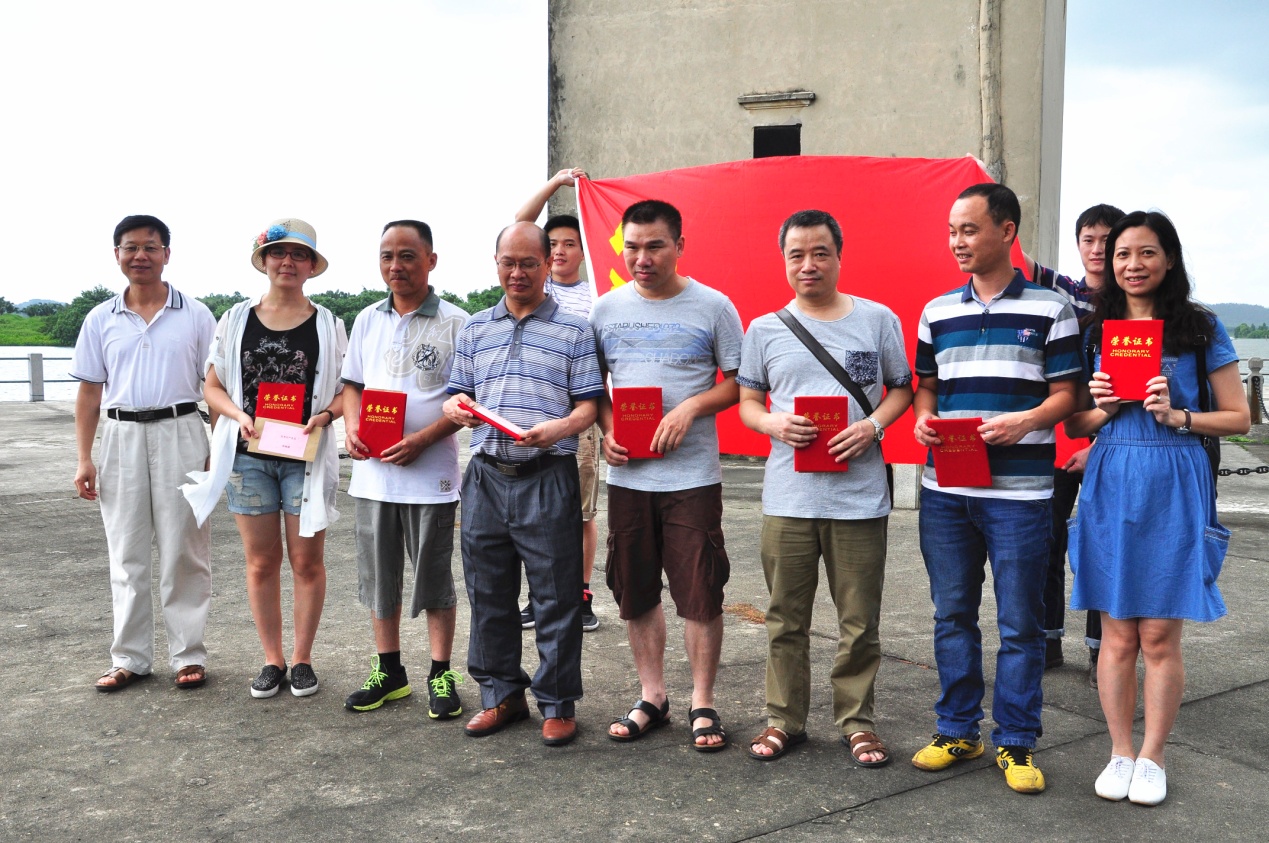 參觀當(dāng)天,艷陽(yáng)高照,在歡聲笑語(yǔ)的旅游車(chē)上,建黨紀(jì)念活動(dòng)首先在熱烈的黨史知識(shí)有獎(jiǎng)問(wèn)答競(jìng)賽拉開(kāi)了帷幕。當(dāng)答題告罄,獎(jiǎng)品紛紛易主時(shí),汽車(chē)就抵達(dá)開(kāi)平南樓。該樓建于1921年,樓高七層19米,每層均有機(jī)槍和探照燈,是司徒氏人為防盜賊而建??箲?zhàn)時(shí)期,七名歸僑及僑屬青年曾在此堅(jiān)守八天九夜痛擊日軍,最后彈盡糧絕,壯士全部捐軀。七壯士雕塑雄壯威武,英靈如塔,藍(lán)天之下,民族精神直沖云霄。我們就在當(dāng)年這一浴血奮戰(zhàn)的所在默默地緬懷,莊重地對(duì)獲得2015年度先進(jìn)黨支部和優(yōu)秀黨員進(jìn)行表彰,展開(kāi)鮮艷的黨旗合影……過(guò)程中,我們幾乎聽(tīng)到烈士群像的呼吸。